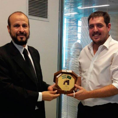 16/01/2018. Una delegación del Banco Santander Río integrada por su Gerente Matías Mariano Urti visitó el CCIAR y recibió una distinguida bienvenida por parte del Sheij Ali Al Shamrani excelentísimo Director del CCIAR.
